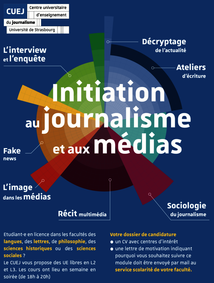 Pour nos partenaires en langues, lettres, sciences sociales, sciences historiques et philosophie les étudiants et étudiantes de deuxième et troisième année de licence peuvent s'inscrire aux UE libres "initiation au journalisme et aux médias" pour le semestre 1.