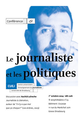 Le Cuej vous invite à la conférence "Le journaliste et les politiques". Discussion avec Rachid Laïreche, journaliste à Libération, auteur de "Il n'y a que moi que ça choque ?" (Les Arènes, 2023)