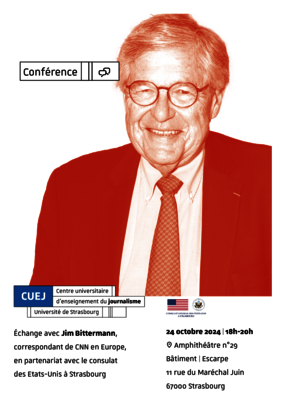 Le Cuej vous invite à la conférence " The 2024 United States elections: issues and media coverage ". Échange avec Jim Bittermann, correspondant de CNN en Europe, en partenariat avec le consulat des Etats-Unis à Strasbourg.